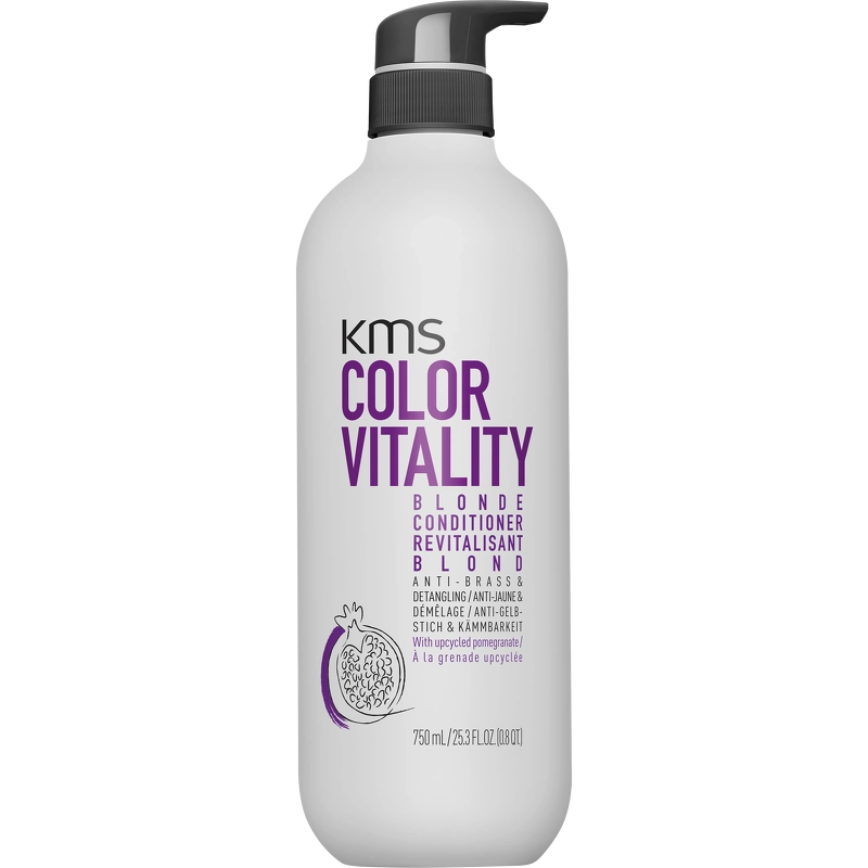 Vi har fundet Kms Colorvitality Blonde Conditioner fra Kms hos nicehair i kategorien . KMS ColorVitality Blonde Conditioner er en lækker conditioner, som forbedrer de kolde toner i blond, lysnet eller gråt hår. Formlen med violette pigmenter og upcyclet granatæble fremhæver de kolde toner i blondt, lysnet eller gråt hår og holder de blonde